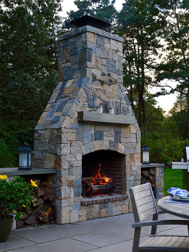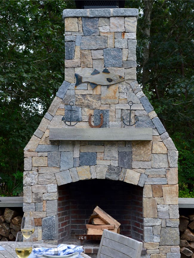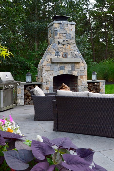 A Cape Cod Outdoor Living Space Designed for Effortless Entertaining, a new project feature from CMS Landscape. This home includes a stunning backyard kitchen and sitting area that's perfect for cooking out and hosting friends by the fireplace.